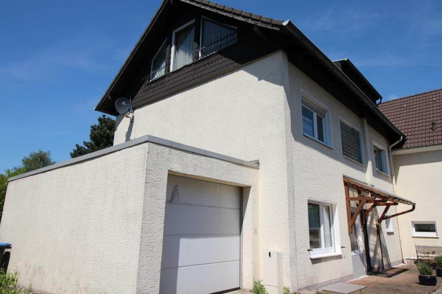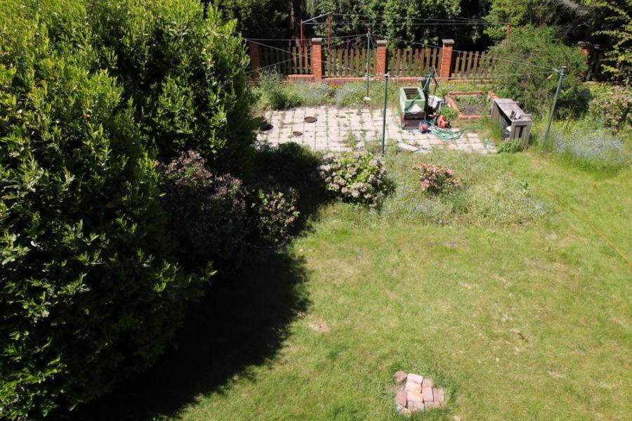 Dieses und das Nachbarhaus rechter Hand bilden eine Eigentümergemeinschaft im Sinne des WEG. Für den Garten besteht ein Sondernutzungsrecht, d.h. Sie alleine können diesen gestalten und ihm die Aufmerksamkeit zukommen lassen, die ihm gebührt. Es gibt ausreichend Platz für Spiel, Spaß und Geselligkeit. Dadurch, dass die jetzt zum Verkauf stehende Hälfte im Familienbesitz war, bestand eine Verbindung über eine Zwischentür zwischen beiden Häusern, über die der Garten erreicht werden konnte. Diese wird nach Verkauf verschlossen, so dass hier noch eventuell ein Zugang über den Essbereich geschaffen werden sollte. Daneben kann der Garten über die direkt neben dem Haus befindliche Garage betreten werden. Ergänzt wird das Ganze noch durch einen weiteren Stellplatz neben den Häusern.