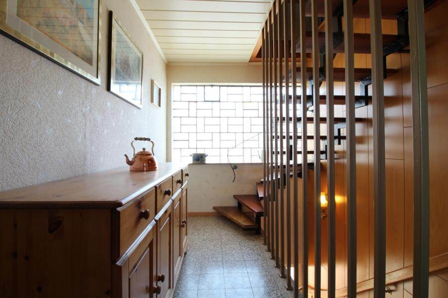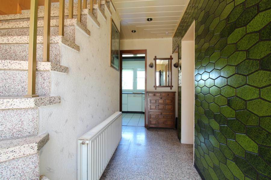 Hier wartet eine individuelle und schnuckelige DHH auf ihre neuen Besitzer! Erbaut im Jahre 1969 als Anbau an das auf der rechten Seite befindliche Gebäude, wurden die ca. 116 m² Wohnfläche step by step immer wieder modernisiert und erweitert. Stylish im Retro-Look empfängt Sie beim Betreten des Hauses das Entree. Im Erdgeschoss befinden sich das Gäste-WC, die Küche, in der Sie mit traumhaften Blick in den Garten Leckeres zaubern und über eine Durchreiche direkt Ihrer Familie oder Ihren Gästen nebenan zur Verkostung übergeben können, sowie das gemütliche Wohnzimmer.