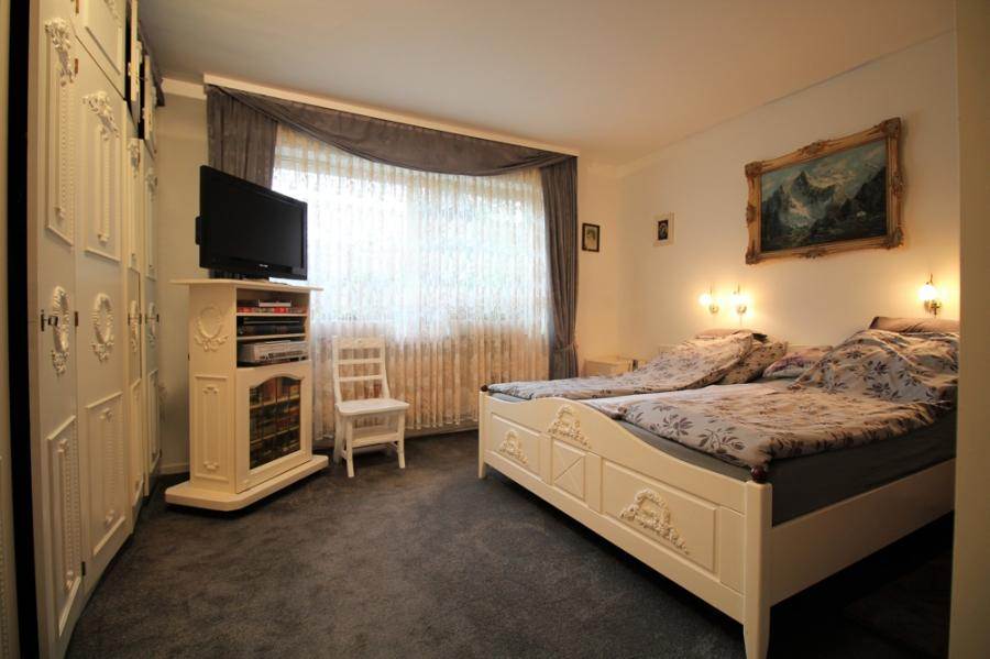 Durch den wunderbar großzügigen Vorgarten erreichen Sie über eine Treppe das Erdgeschoß und somit den Hauptwohnbereich des Hauses. Das Entree bietet ausreichend Platz für Ihre Garderobe, hier finden Sie auch das Gäste-WC. Linkerhand betreten Sie den Wohn- und Essbereich mit direktem Zugang zu der sonnigen, teilweise überdachten Terrasse und dem Garten. Vom Essbereich geht es direkt in die Küche und auch in das mit großen Fensterflächen zu beiden Seiten ausgestattete und daher lichtdurchflutete Wohnzimmer. Das Bad auf dieser Ebene wurde Anfang 2000 luxuriös modernisiert, mit Eckbadewanne, Designer-Duschtempel, Toilette und Bidet – Der perfekte Wellnesstempel! Vervollständigt wird das Erdgeschoß vom derzeitigen Schlafzimmer. Hier ist auch eine Nutzung als Arbeitszimmer denkbar – je nach Ihren Planungen für das Dachgeschoß.