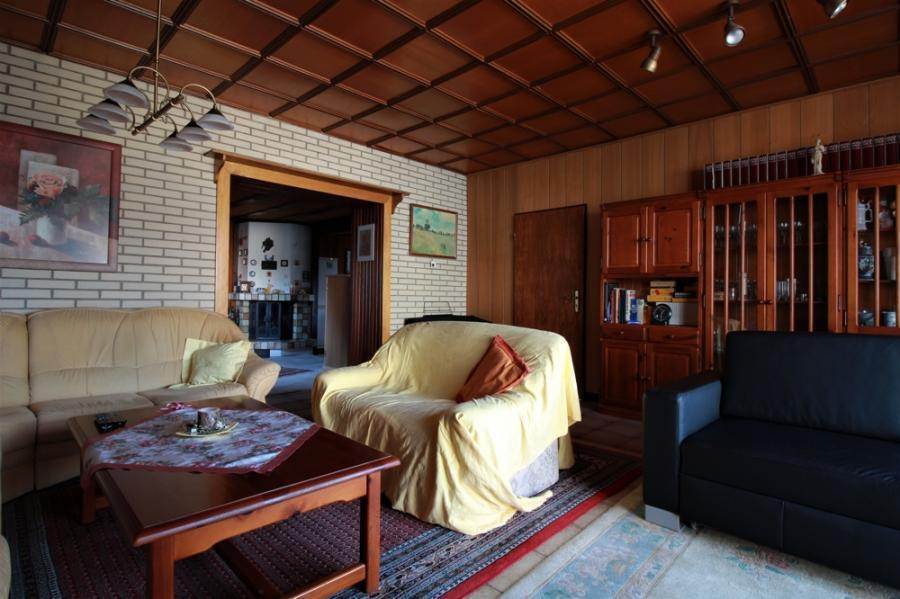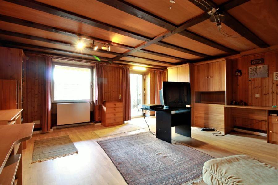Das Wohnzimmer und das daneben liegende Wannenbad mit superschickem Retro-Charme befinden sich in dem 1979 errichteten Anbau. Durch diesen wurden auch weitere Räumlichkeiten im Souterrain geschaffen, die Sie über eine Wendeltreppe erreichen: Ein großzügiger Wohnraum, ein Duschbad sowie auch hier ein separater Eingang und eine weitere Terrasse bieten mit etwas Umbau-Aufwand die Schaffung eines vollwertigen Appartments (z.B. für weitere Familienangehörige oder auch eine Pflegekraft).