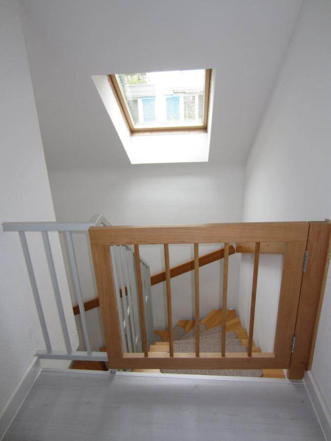 Die gesamten Räume sind mit Schrägen versehen, die zu einer besonders gemütlichen Atmosphäre führen.