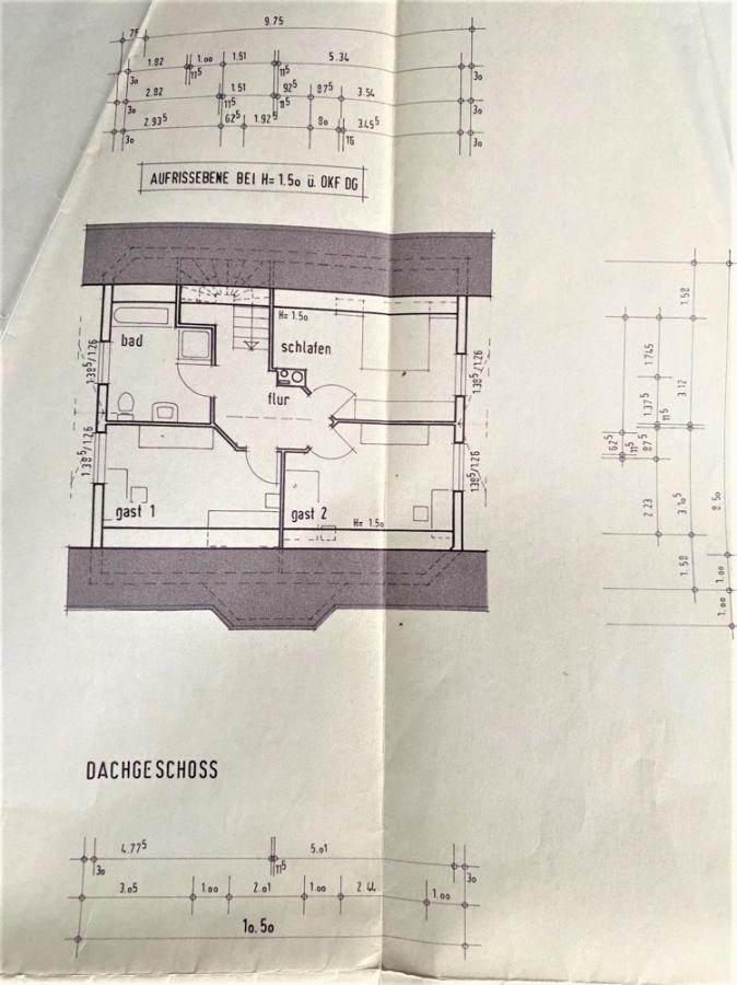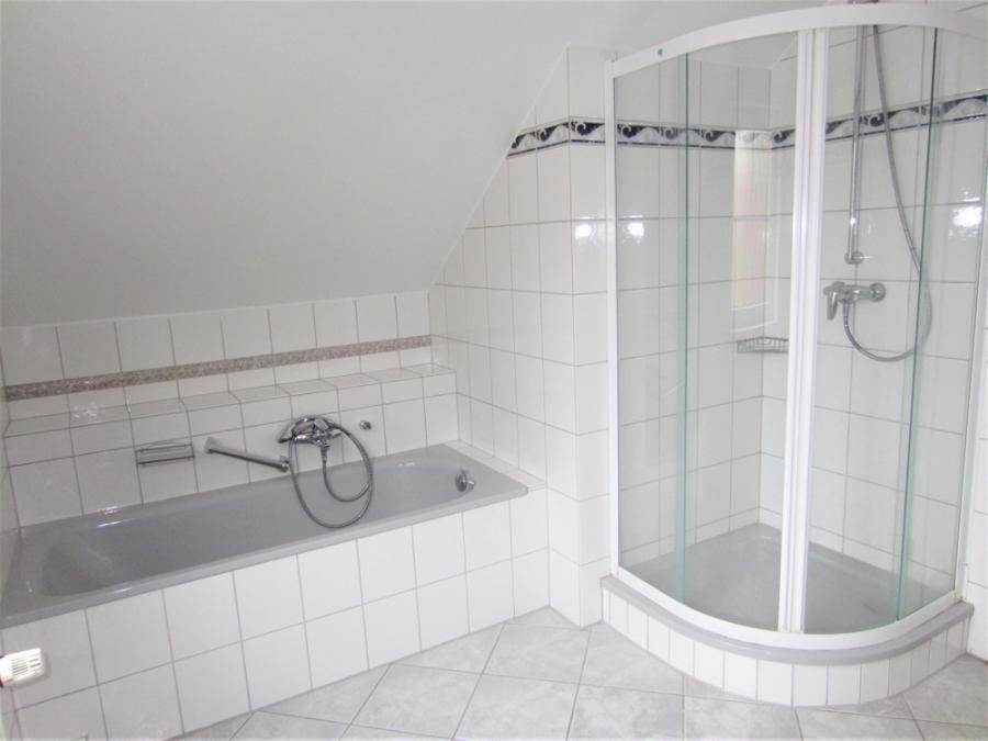 Auf der Obergeschossebene befinden sich noch eine Diele, ein Schlafzimmer, zwei Kinderzimmer und ein Tageslichtbad mit 2 Waschbecken, WC, Badewanne und Dusche.