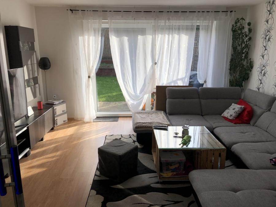 EG: Großes Wohnzimmer mit Zugang zur Terrasse und Garten, große Wohnküche, Diele, Gäste-WC.