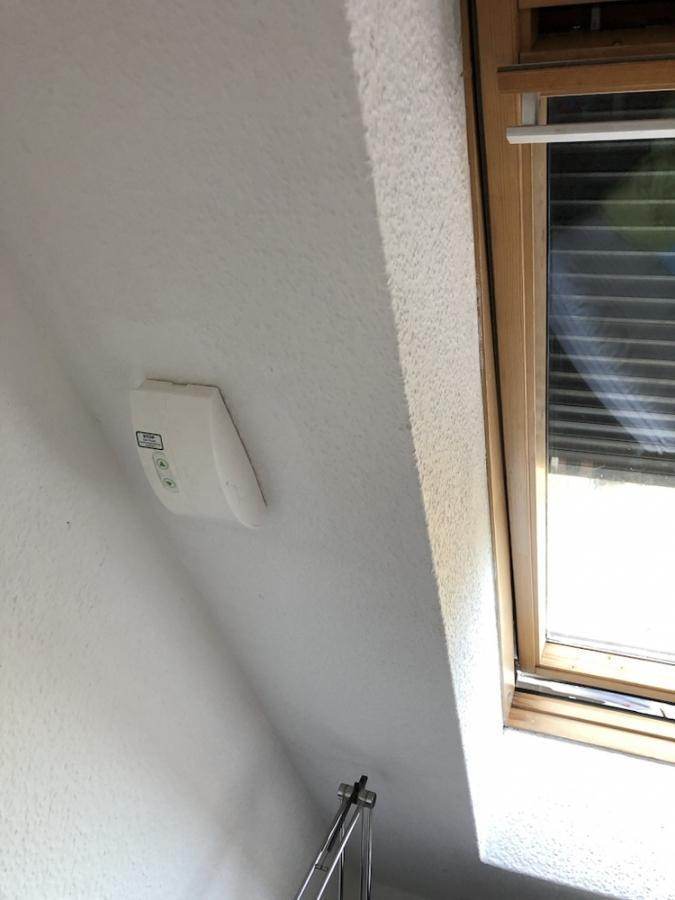 Die Fenster im Objekt sind aus Kunststoff, Thermopen verglast mit Außenrolläden, die Dachfenster von Velux mit elektrischen Außenjalousien.