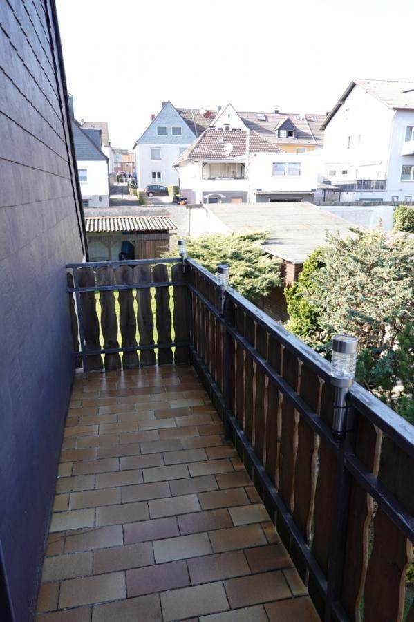 Die Obergeschosswohnung ist vermietet und identisch geschnitten, hat jedoch statt Zugang zum Garten einen großen Balkon.