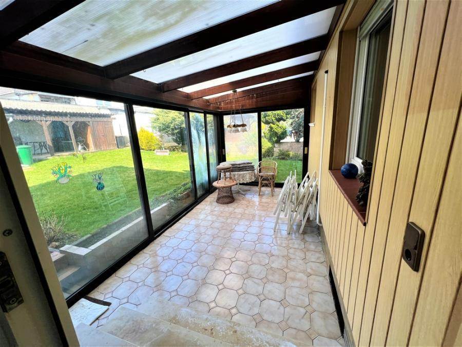 In der Erdgeschosswohnung befinden sich zwei helle Schlafzimmer, ein hell gefliestes Badezimmer mit Badewanne, eine Küche mit Platz für eine kleine Essecke, sowie ein großer Wohn- und Essbereich von dem man Zugang zum Wintergarten und Garten hat.