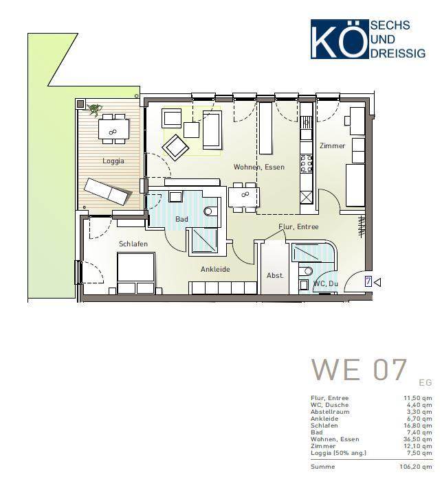 Von der Wohnungseingangstür aus gelangen Sie in das Entree, wo sich das Gäste-WC mit ebenerdiger Dusche befindet. Auf der rechten Seite des Entrees ist das jetzige Kinderzimmer. Wenn Sie weiter dem Entree folgen haben sie zu ihrer linken einen ca. 3 m² großen Hauswirtschaftsraum bis sich dann auf der rechten Seite das offen gestaltete, lichtdurchflutete und großzügige Wohn- und Esszimmer mit offener Küche zeigt, von dem Sie auch einen Zugang zur Terrasse haben. Gegenüber vom Essbereich gelangen Sie ins wunderschöne Schlafzimmer mit Ankleidebereich. Der andere Zugang zur Terrasse ist hier erreichbar, sowie durch das vom Schlafzimmer direkt begehbare Hauptbadezimmer mit Dusche und WC.
