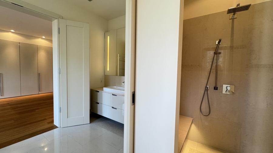 Der große Wohnungseingangsbereich im Erdgeschoß rechts empfängt Sie mit dem Zugang zum Gästezimmer und Gästebad. Durch die hohe, massive Flügeltür erreichen Sie den hellen, von zwei Seiten belichteten Wohnbereich mit Zugang zur Küche und Terrassen. Das Schlafzimmer mit Ankleidezimmer und En-Suite Bad sowie einer weiteren grossen Terrasse lädt Sie in eine kleine Wellnessoase ein. Durch die Tiefgarage mit Elektroladestationen direkt unter dem Haus, erreichen Sie diese große und komfortable Eigentumswohnung mit dem Aufzug.