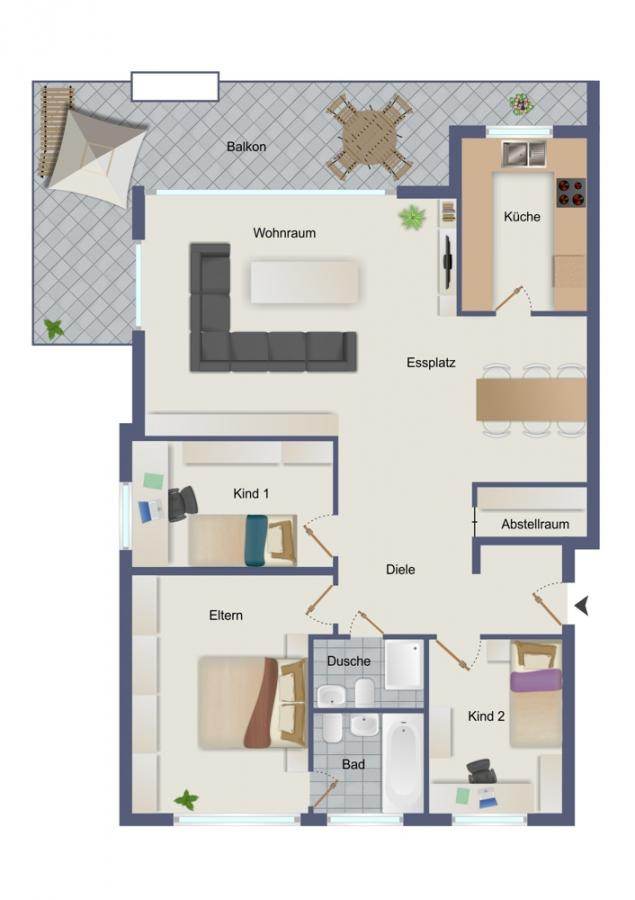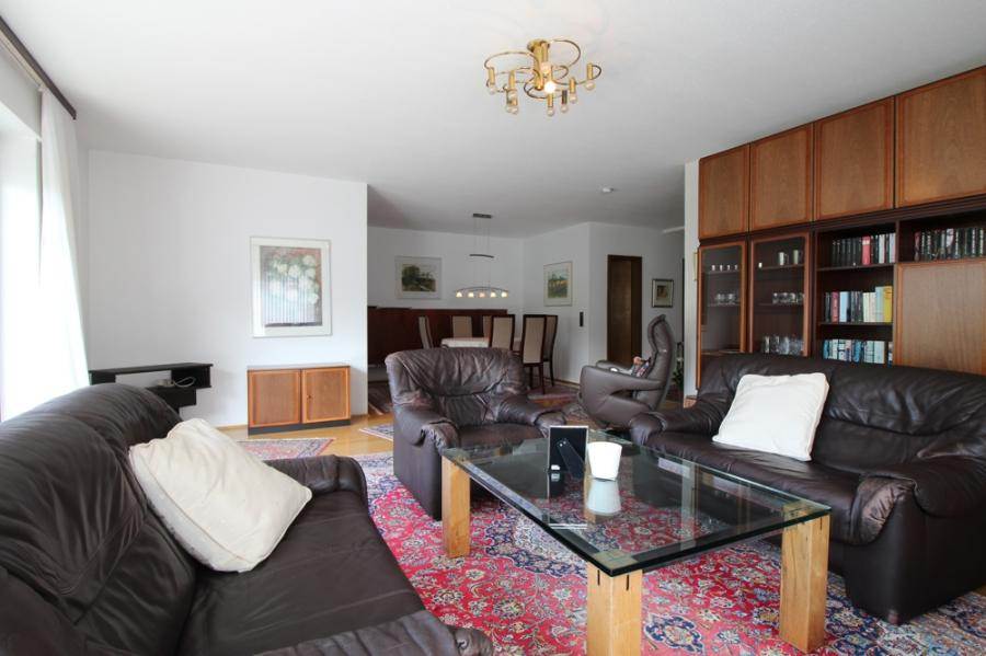 Lage, Lage, Lage – Diese großzügig geschnittene, gepflegte ca. 118 m² große ETW lässt wirklich keine Wünsche offen: Schon beim Betreten erhalten Sie einen Eindruck von der hervorragenden Aufteilung und dem sehr vorteilhaften Schnitt: Ein kleiner Garderobenbereich bietet Platz für Jacken und Mäntel, dann stehen Sie schon in der geräumigen Diele. Von hier aus lässt sich schon das Highlight erahnen: Der sehr große, sonnige Balkon (süd-westlich ausgerichtet) sucht schon seinesgleichen! Hier können Sie in geselliger Runde gemütliche Stunden verbringen, eine Markise bietet Sonnenschutz. Sollte das Wetter mal nicht so schön sein, bietet das lichtdurchflutete, großzügige Wohnzimmer mit dem angrenzenden Essplatz ausreichend Platz für die Familie, Freunde und andere Gäste.