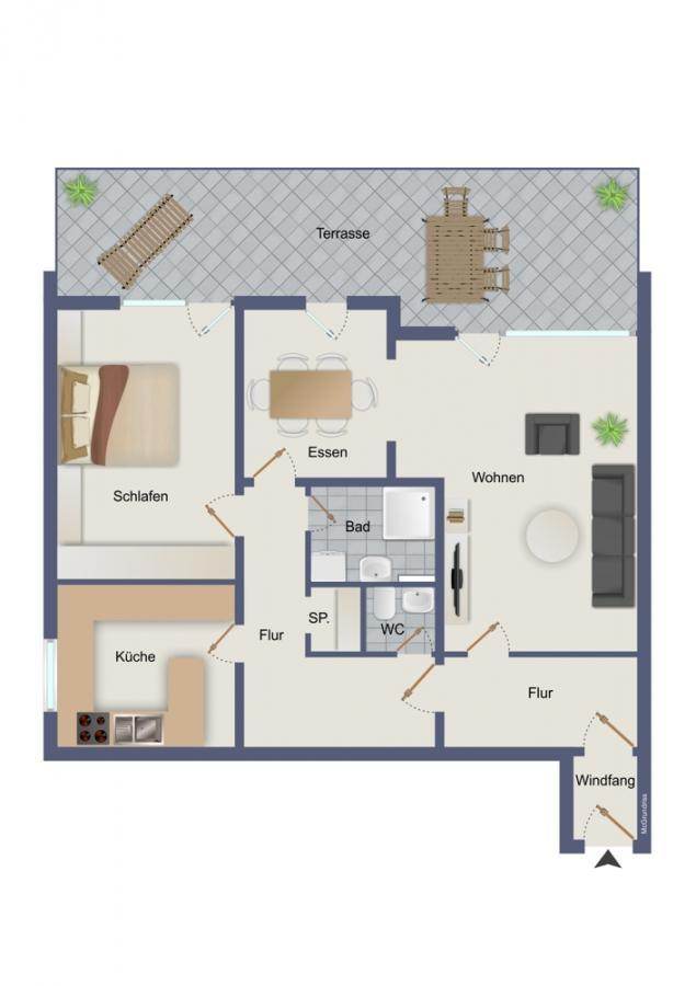 Lichtdurchflutete 3 Zimmer Wohnung mit großer Terrasse, Garage und Stellplatz