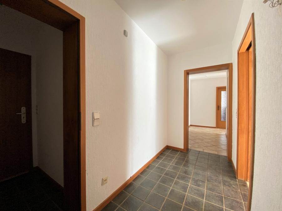 Von der geräumigen Diele in L-Form sind alle Zimmer der Wohnung zu erreichen. Auf der rechten Seite befindet sich das großzügige und lichtdurchflutete Wohnzimmer mit riesiger Fensterfront und Austritt auf die sonnenverwöhnte Terrasse. Vor einigen Jahren wurde ein Durchbruch in das daneben liegende Kinderzimmer gemacht, in dem sich jetzt der Essbereich wiederfindet. Hier kann der ursprüngliche Grundriss problemlos wieder hergestellt werden. Auch dieses Zimmer verfügt über einen Zugang zur Terrasse. Nebenliegend ist das großzügige Schlafzimmer, ebenfalls mit Zugang zur Terrasse. Unterhalb des Schlafzimmers befindet sich die Küche, gegenüber das Badezimmer mit Dusche und Anschluss für die Waschmaschine, ein kleiner Abstellraum, sowie das separate WC.