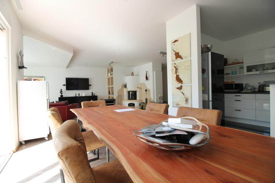 Dies reicht von Granitböden in Bädern und Küche, über pflegeleichte, aber fußwarme Vinylböden in edler Holzoptik in Wohn- u. Essbereich sowie in den Schlafräumen, bis hin zum Kamin, der modernen Einbauküche, Granitablagen in den Bädern, hochwertige Innentüren uvm.