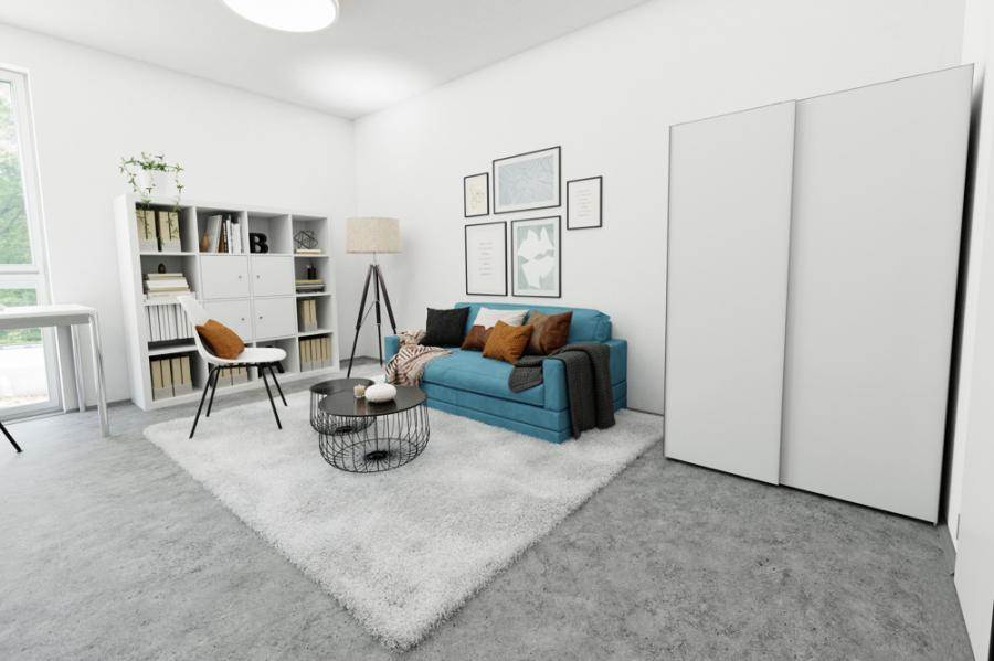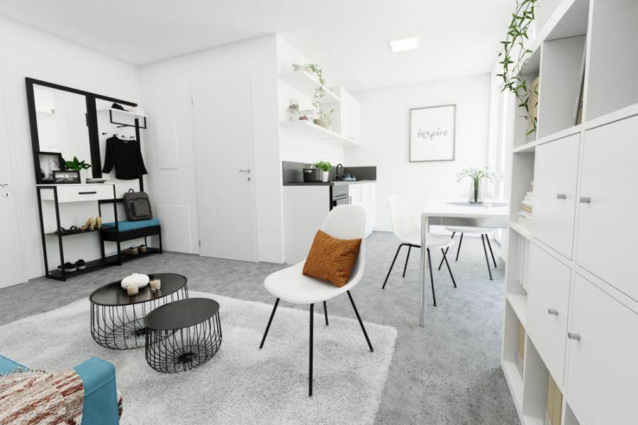 Es gibt Wohneinheiten zwischen 23 und 73 m². Die größeren Wohnungen eignen sich hervorragend für eine 2er-WG, denn hier hat jeder Bewohner durch sein eigenes Zimmer genügend Privatsphäre. Besonders wenn man die Gesellschaft anderer Menschen schätzt und gerne mit Freunden Zeit verbringt bietet sich dafür wunderbar der Gemeinschaftsraum mit Einbauküche und einem Zugang zur großen und sonnigen Terrasse an.
