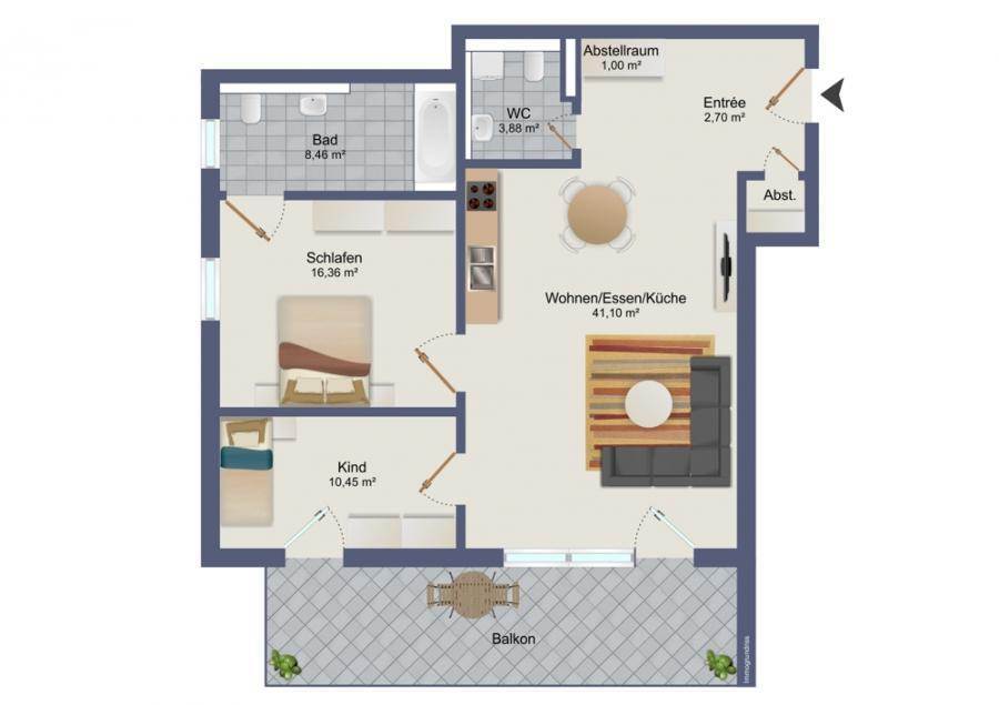 Wir weisen darauf hin, dass unsere Angaben auf den uns erteilten Informationen der Auftraggeber basieren. Für die Richtigkeit und Vollständigkeit dieser Angaben der Auftraggeber und deren Vertretern wird keine Haftung übernommen. Inbesondere weisen wir darauf hin, dass die Grundrisse in Details von den tatsächlichen Ausstattungsmerkmalen abweichen können. Die Wohnfläche setzt sich wie folgt zusammen: Ca. 81,5 m² reine Wohnfläche zzgl. ca. 20 m² Balkon (brutto).