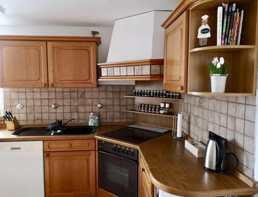 Auch der Zugang auf den sonnenverwöhnten Balkon befindet sich hier, auf dem Sie zudem noch einen herrlichen Weitblick genießen können. Von dem Wohn- und Essbereich gelangen Sie in die großzügige, voll ausgestattete Küche und ausreichend viel Stauraum.