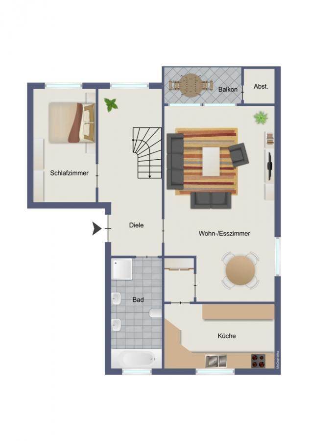 Die ca. 100 m² helle, sich über zwei Etagen erstreckende Maisonette-Eigentumswohnung, befindet sich in der dritten Etage eines ansprechenden 6-Familienhauses.